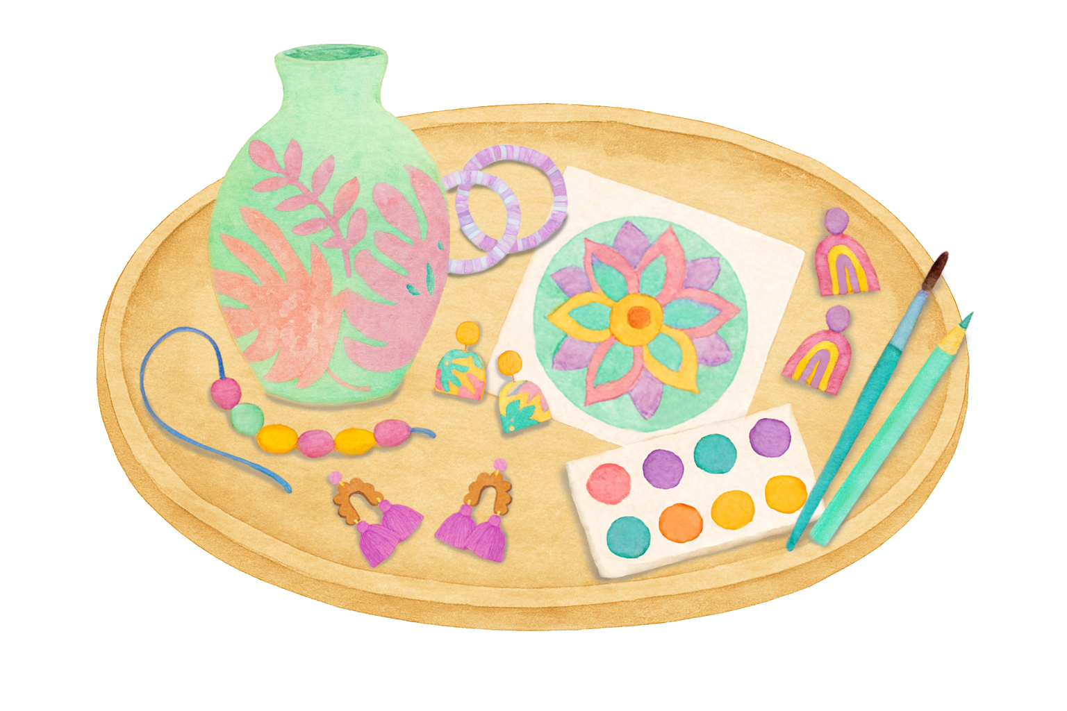 Our classes are playful, tactile, and thoughtfully curated—from leather clutch-making and ceramics painting to jewellery design and craftcuterie samplers. Whether you're a curious beginner or a seasoned maker, there's a seat for you at our creative table.